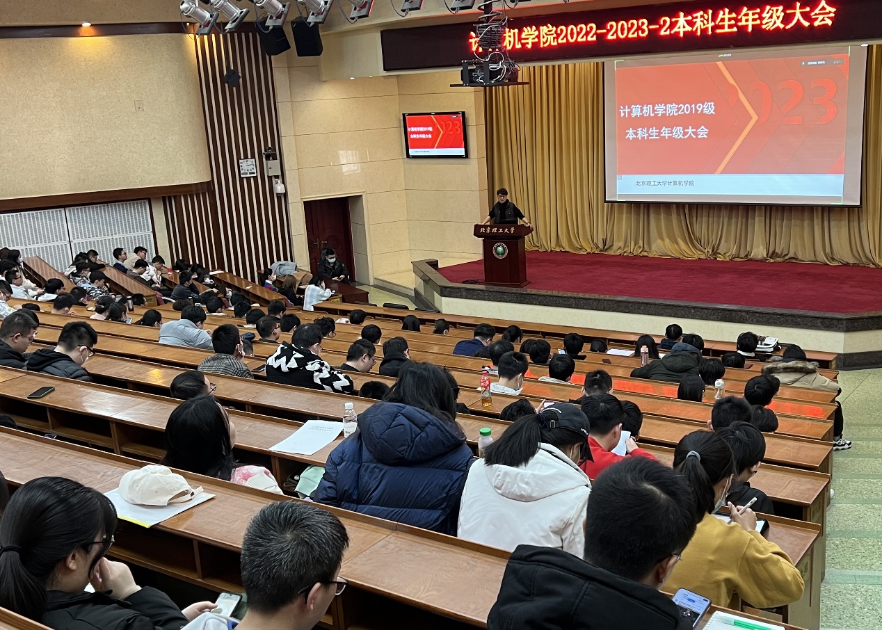 为引导本科生职业生涯规划,做好本科生毕业各项工作,3月1日下午,动漫屋 于中心教学楼报告厅召开算机学院2019级本科生年级大会。动漫屋 党委副书记、副院长奚英伦,本科生教学干事孟春,就业干事杨毅,团委书记史继筠,本科生辅导员曾杨杰出席会议,全体2019级本科生参加会议。会议由曾杨杰主持。