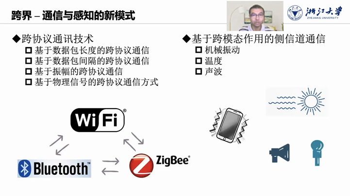 感知是现代智能计算与服务的基础。物联网、人工智能、数字孪生等新技术的流行与普及,对感知提出了更高的要求。为了获得丰富、精细、可信的感知数据,利用不同模态信号的相互作用进行感知成为一个有前途的方向。韩劲松教授介绍了跨模态感知技术,并指出目前该技术仍存在采样率低、迁移性差和复杂度高等问题亟待解决。在此次报告中,韩劲松教授介绍了基于数据包长度、基于数据包间隔和基于振幅等几种主流跨协议通信技术,以便形象地说明跨模态感知的作用机理和实际应用中的技术难点。最后,韩劲松教授还介绍了学术界目前对上述问题的可行解决方法。